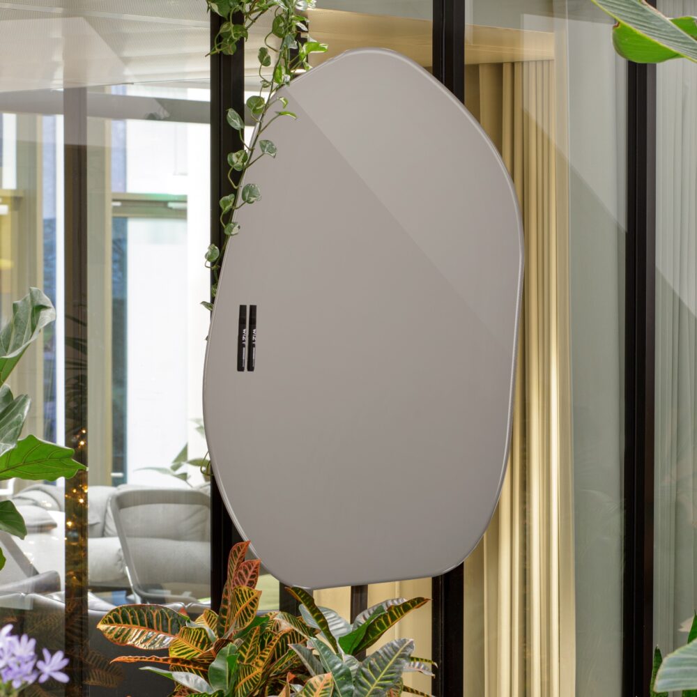 Blinde montage op de wand. Het GlassBoard wordt aan haaklatten welke in de muur zijn geboord opgehangen.