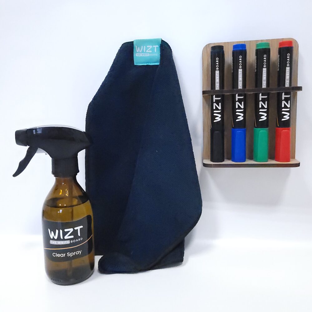 Wanneer je ervoor kiest om een gepersonaliseerd whiteboard te kopen, horen hier natuurlijk customized accessoiresbij. Zo kun je bijvoorbeeld een wisser, magneten, reinigingsoplossingen en whiteboard markers gemakkelijk kopen bij Wizt.